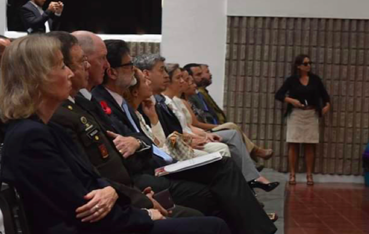 Entre autres personnes figurent sur cette photo : le Ministre de la Défense au Salvador, la chargée d’Affaires de l’ambassade d’Allemagne, l’ambassadeur britannique et l’ambassadeur du Brésil.