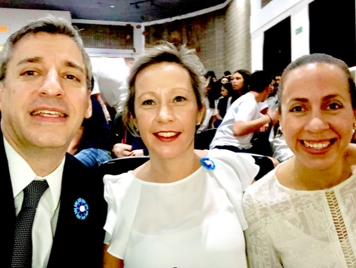 Alain Kahn et sa femme Florence – arborant les bleuets de circonstance – et la Présidente du Directoire du lycée français, Madame Melanie.