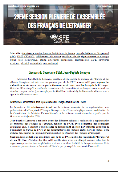 TELECHARGER LA FICHE PDF Monsieur Jean-Baptiste Lemoyne, secrétaire d’Etat auprès du ministre de l’Europe et des affaires étrangères, est intervenu au premier jour de la 29ème session AFE pour exposer les « chantiers menés ou...
